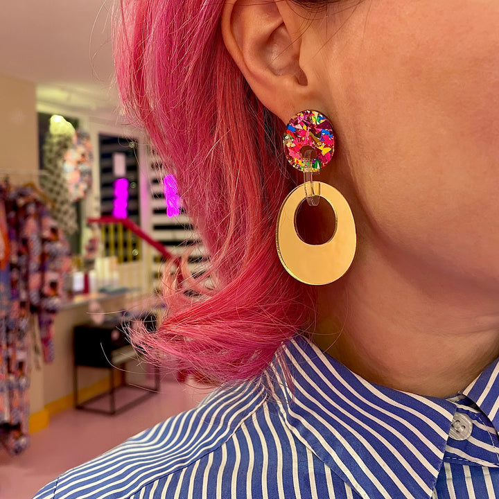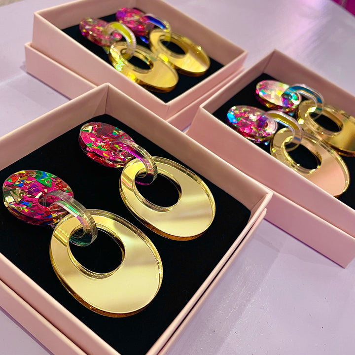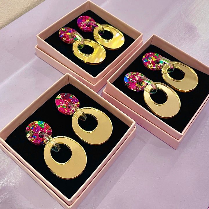 CELEBRATE “Too Loud” are all about celebrating you being YOU. No more hiding away your inner voice! The earrings are super lightweight and comfy to wear all day. Explore all our color-combos!