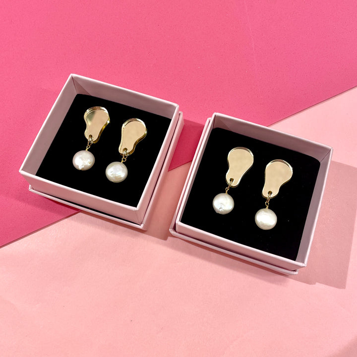 Delicate,golden and full of charm. Golden drops with pearls and earstuds