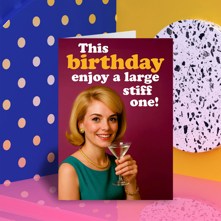 Who doesn't love a nice big stiff one on their birthday? You've got a rude mind, of course i meant a drink. I wouldn't put the other on a birthday card.
