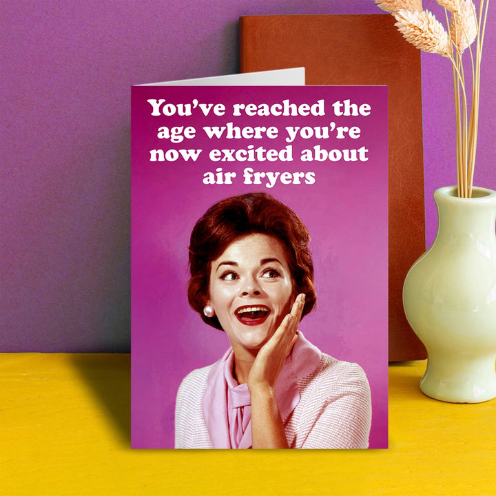 There comes a time in our life (I'm already there!) when youthful pursuits like clubbing get taken over by the best laundry powder, cosy nights in and of course the wonders of air fryers. We now have a card for that friend who've reached this milestone.