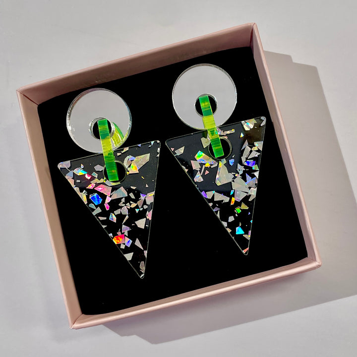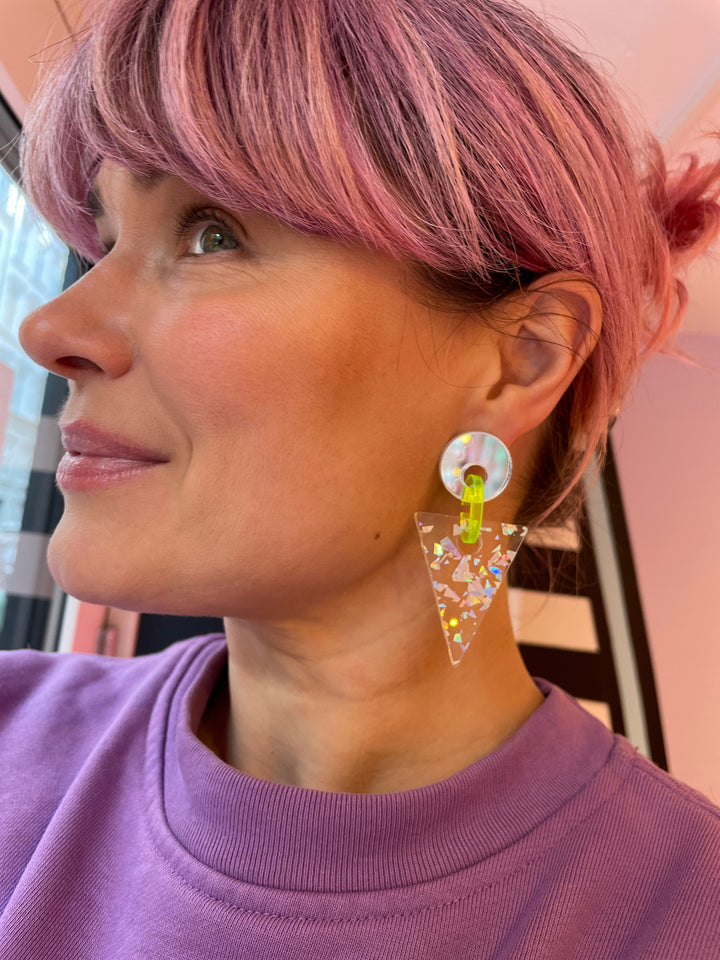 Geometry Baby are super lightweight earrings and comfy to wear all day. 80 geometry design and color combos are great for an evening on the dancefloor!