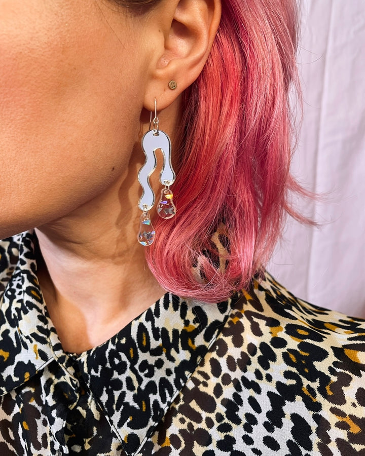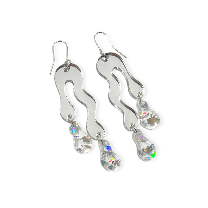 Beautiful double melted drops, with two Holo Flakes / holographic tint drops and earhook